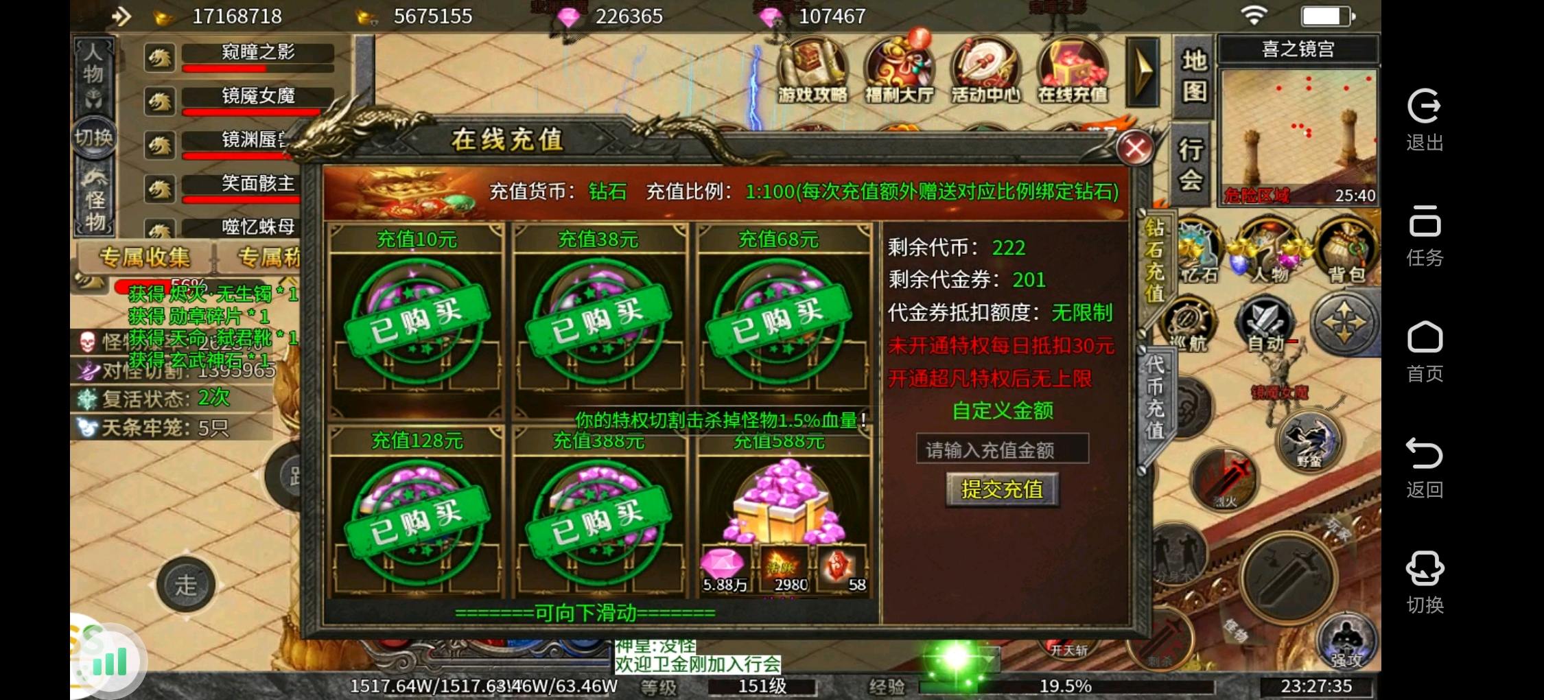 boss随便打,代币还有1600,可以充值任何礼包,每天可以