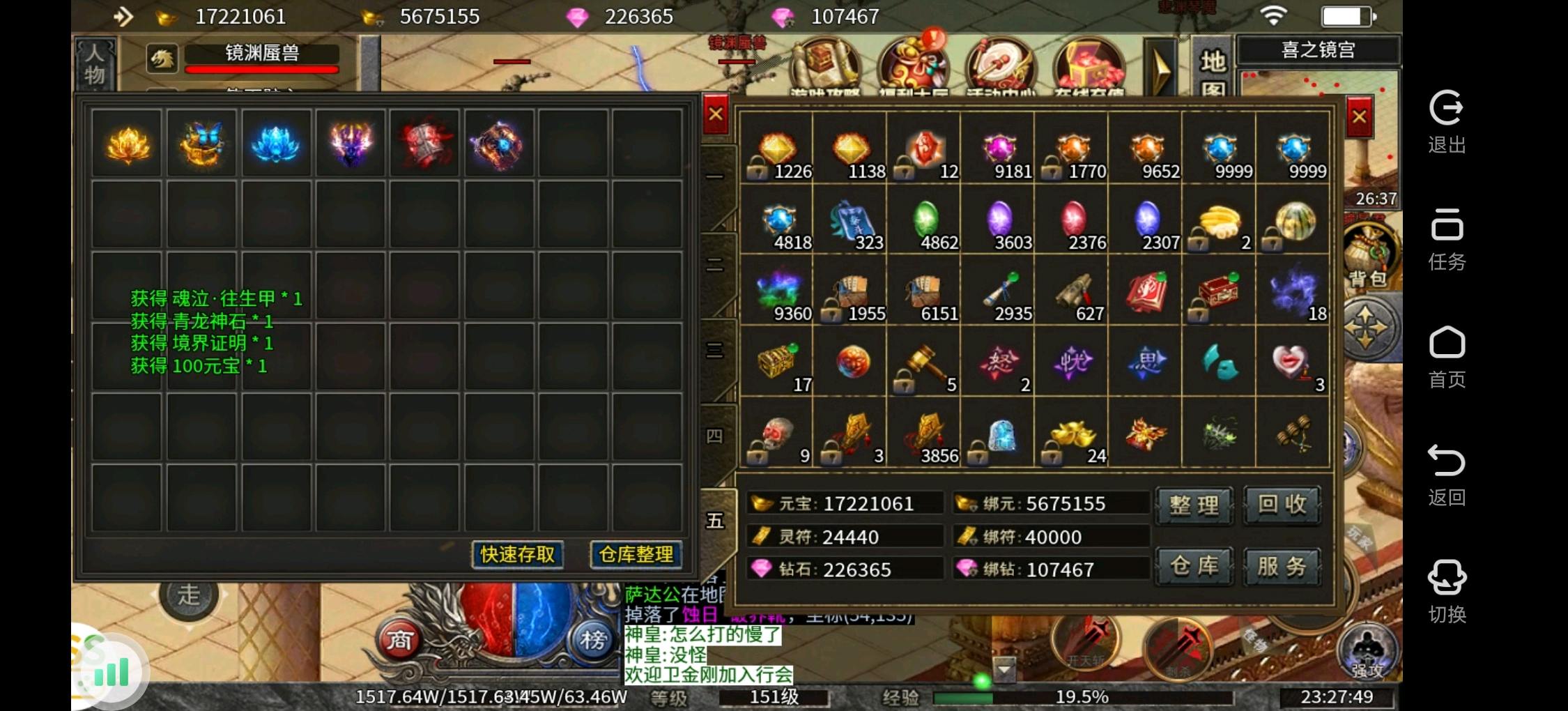 仓库三级至尊神装,无敌四秒,突破丹一百多个可以升级